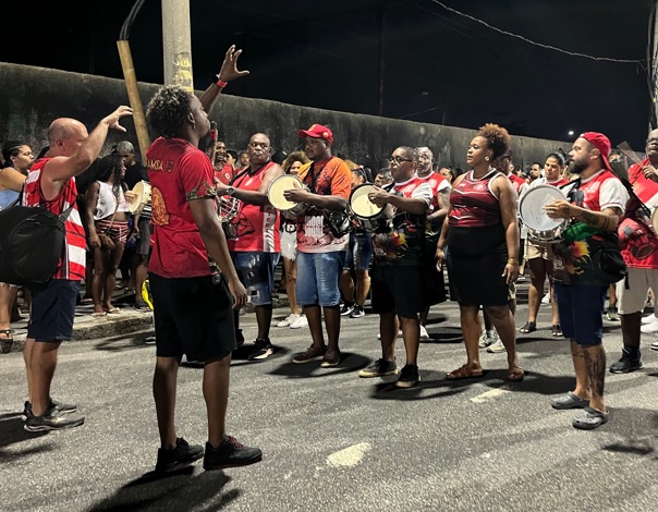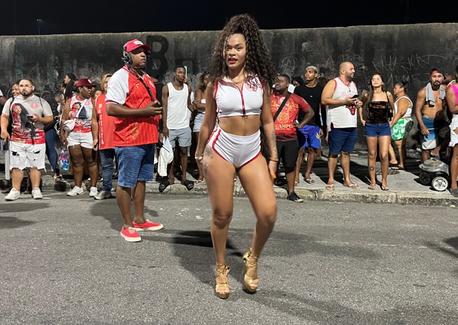 O samba-enredo pegou na comunidade como chiclete; a comunidade estava em peso, com a letra gravada na memória. As alas, em sintonia com a bateria e o carro de som, cantavam com potência, e o público também acompanhava. Esse sucesso do samba ficou explícito na paradinha da bateria e dos intérpretes, justamente para deixar o povo soltar a voz, e eles fizeram isso com excelência: cantaram com muita força e admiração pela agremiação.